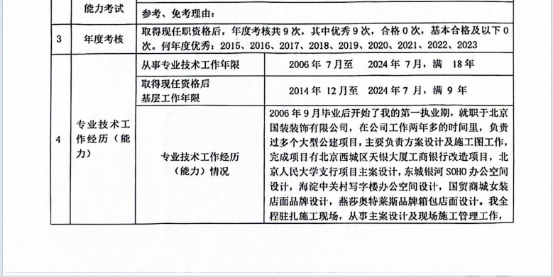 申報評審建筑工程系列建筑設(shè)計專業(yè)技術(shù)職務(wù)任職資格情況——王詩陽